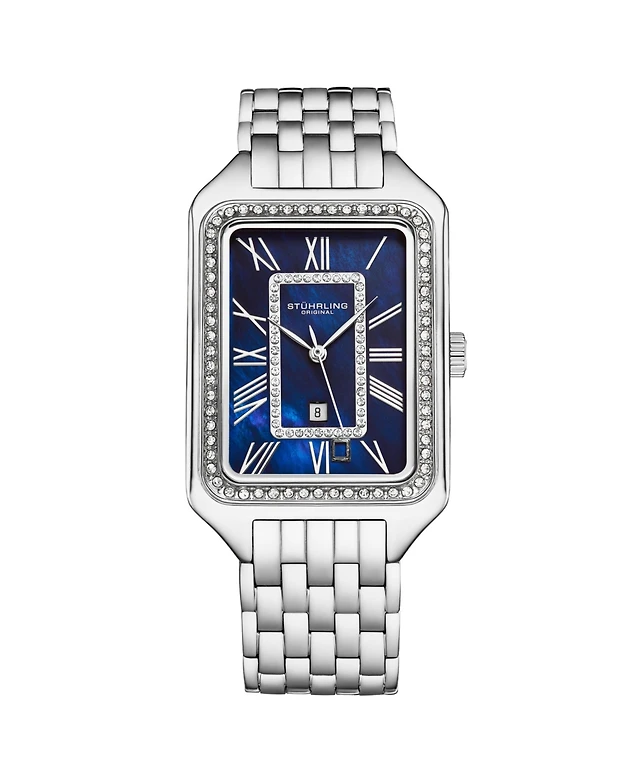 Stuhrling Women s VivreLuxe 34mm Rectangle Quartz Watch, Crystal Bezel, Roman Numeral Dial