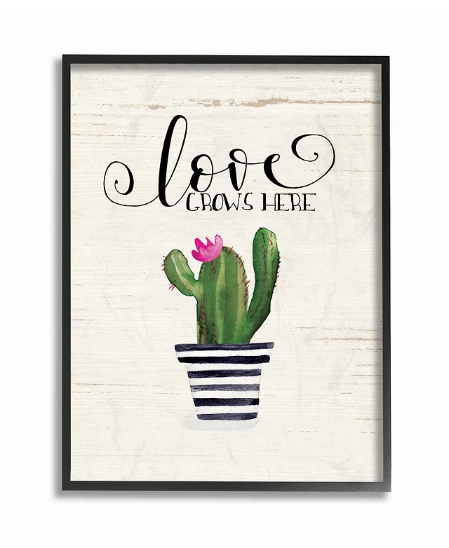 Stupell Industries Love Grows Here Cactus Framed Giclee Art, 16" x 20"