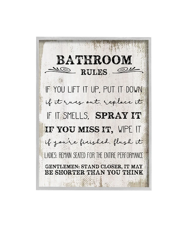 Stupell Industries Bathroom Rules Funny Word Wood Textured Design Gray Farmhouse Rustic Framed Giclee Texturized Art Collection By Daphne Polselli
