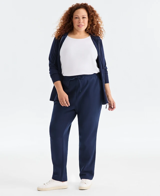 Style & Co Women's Plus Mid Rise Drawstring-Waist Fleece Pant, Exclusively at Macy's
