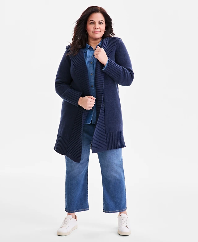 Style & Co Plus Hooded Open-Front Cardigan Sweater