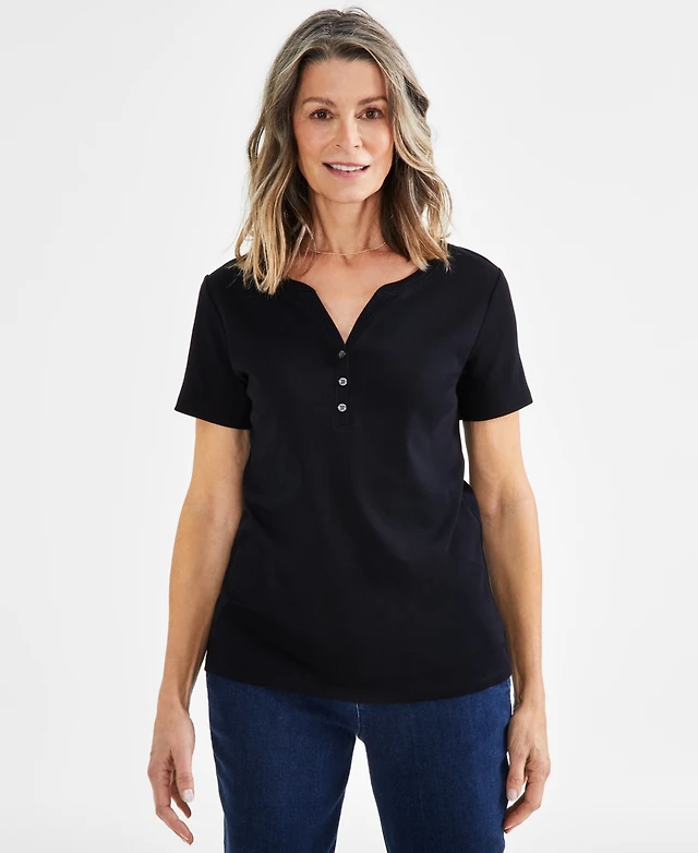 Style & Co Petite Cotton Henley Short-Sleeve T-Shirt, Exclusively at Macy's
