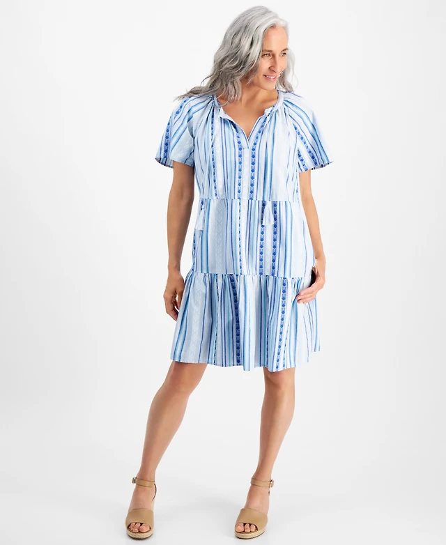 Style Co Womens Stripe Split Neck Tiered Dress Espadrille Wedge Sandals Straw Tote Created For Macys