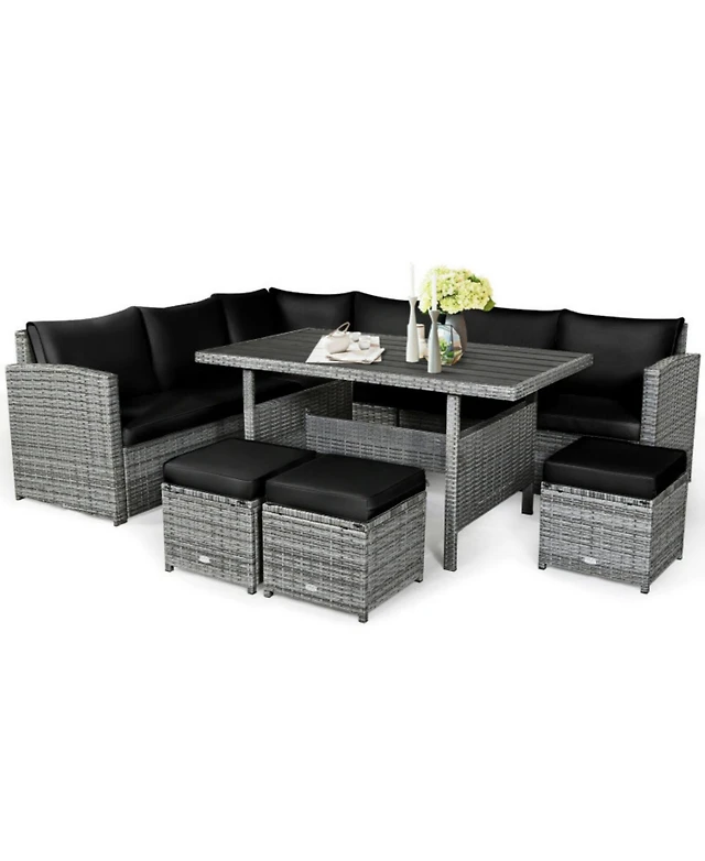 Sugift 7 Pieces Outdoor Wicker Sectional Sofa Set with Dining Table