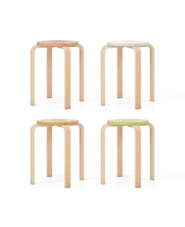 Sugift Set of 4 Bentwood Stackable Stools Dining Stools with Round Tops