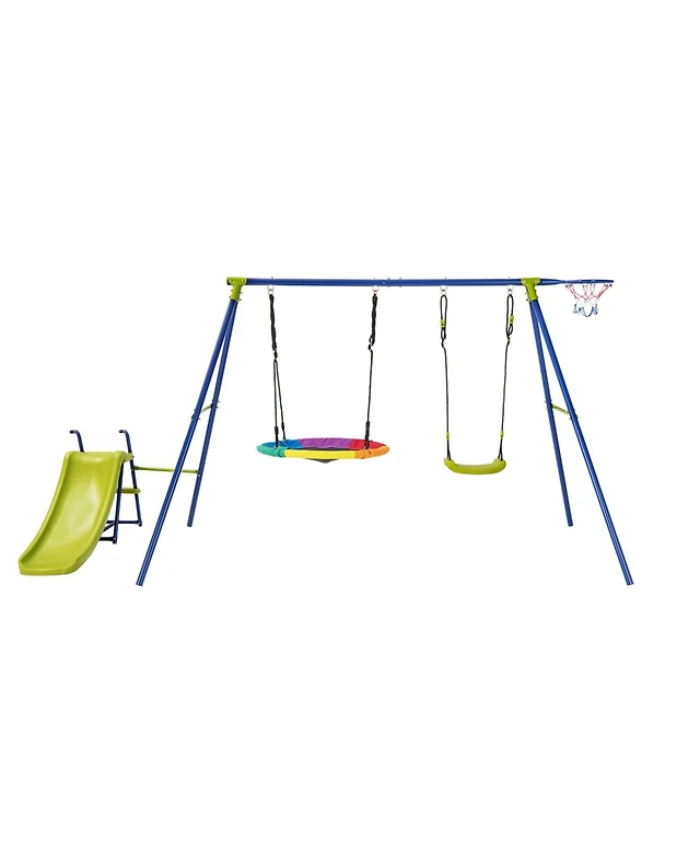 Sugift 4-in-1 Heavy-Duty Metal Playset with Slide and Basketball Hoop