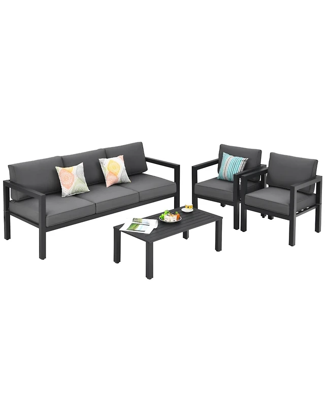 Sugift 4 Pieces Set Outdoor Furniture Set for Backyard and Poolside
