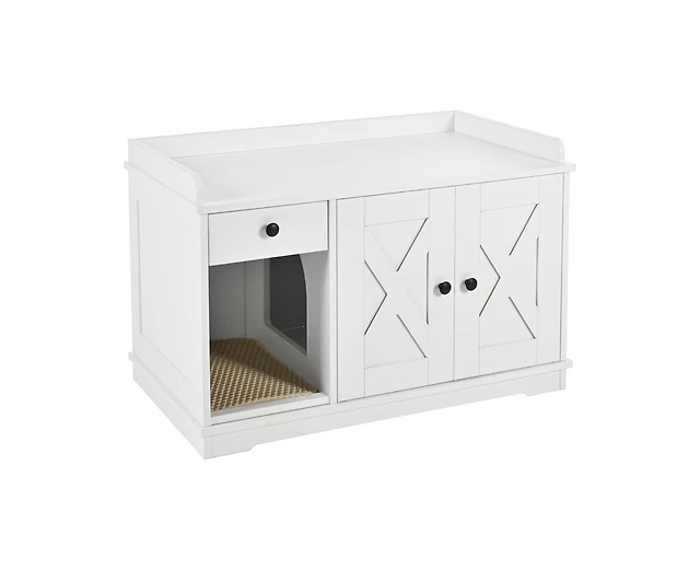 Casainc White Bathroom Storage Cabinet with Two Doors, Drawers, Adjustable Shelf & Open Shelves