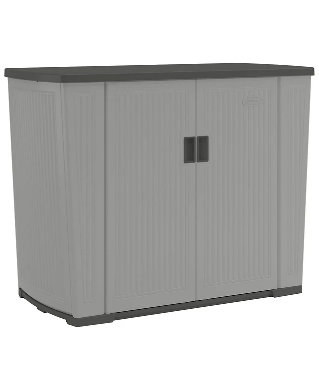 Suncast Lockable Outdoor Cabinet Deck Storage Box w/ Adjustable Shelf, Cool Gray
