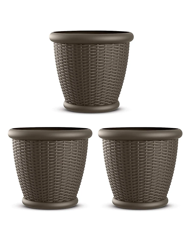 Suncast Willow 18" Plastic Decorative Wicker Patio Planter Pot, Java (3 Pack)