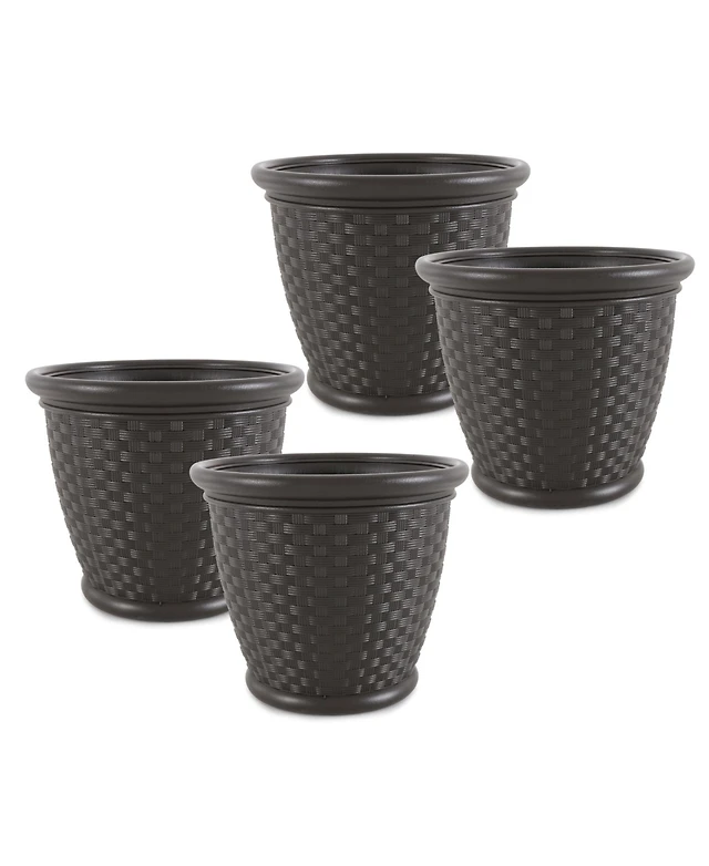 Suncast Sonora 18 Inch Resin Wicker Decorative Flower Planter, Brown (4 Pack)