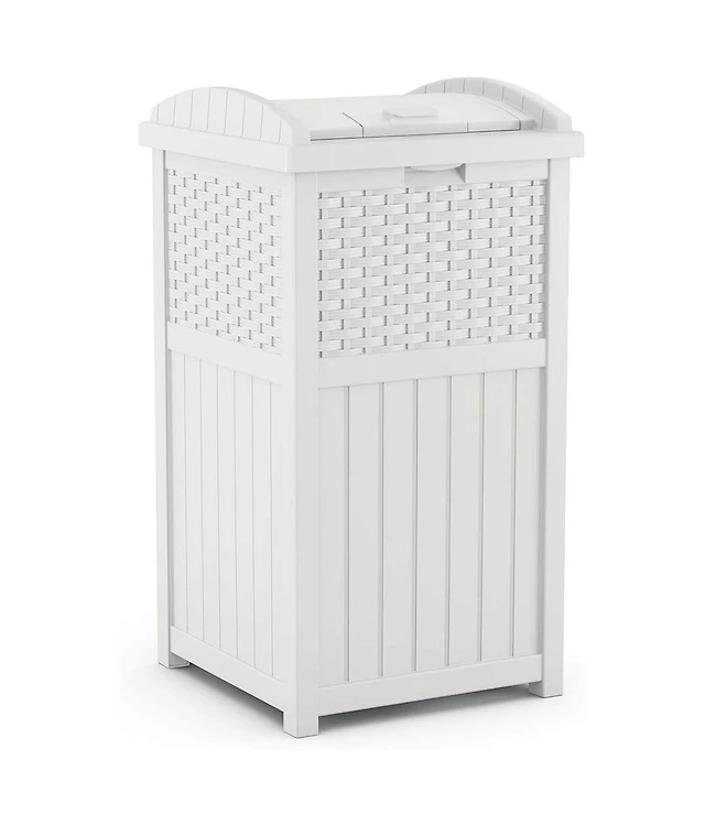 Suncast GHW1732WH Trashcan Hideaway Outdoor 33 Gallon Garbage Waste Bin, White