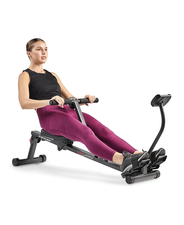 Sunny Health & Fitness Smart Compact Hydraulic Rower &with 12 Levels Resistance and Free SunnyFit App Via Bluetooth