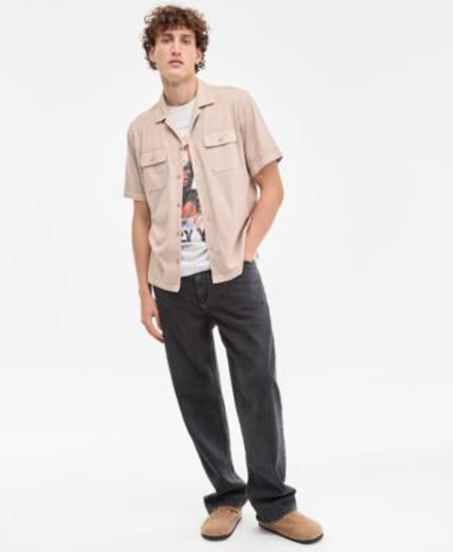 Sun Stone Mens Camp Joss Regular Fit Embroidered Button Down Shirt Inside Out Regular Fit T Shirt Mousse Baggy Jeans Macys Exclusive