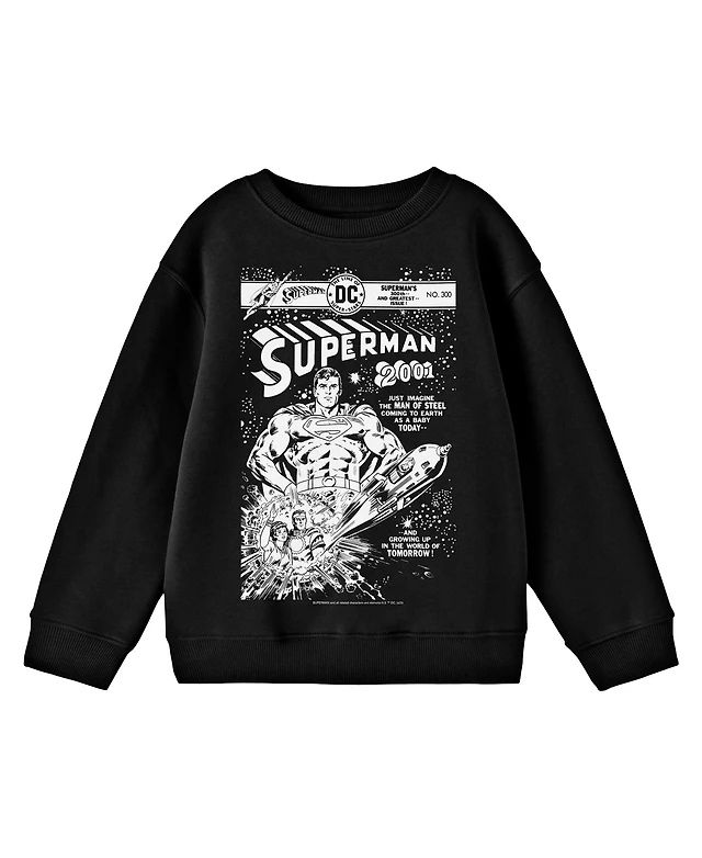 Superman Boys Comic Cover No. 300 Crew Neck Long Sleeve Black Youth Tee