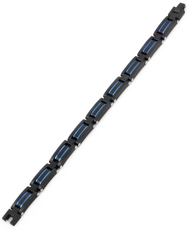 Sutton Stainless Steel Black and Blue Link Bracelet