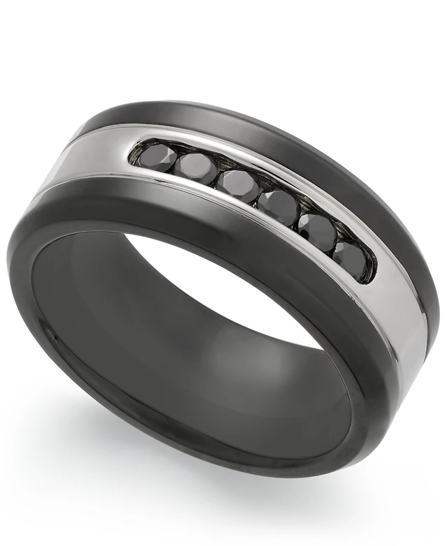 Sutton by Rhona Men's Stainless Steel Cubic Zirconia and Black Enamel Ring