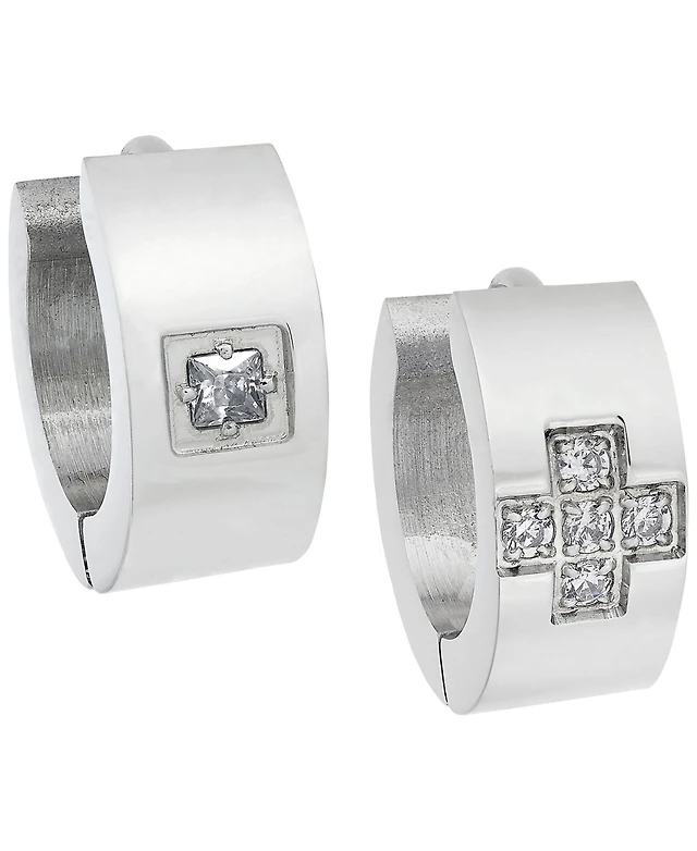Sutton Stainless Steel And Cubic Zirconia Huggie Earring Set