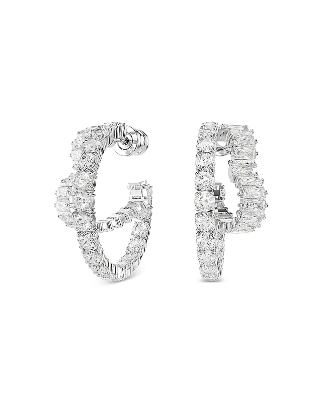 Swarovski Matrix Crystal Round & Heart Double Row Hoop Earrings