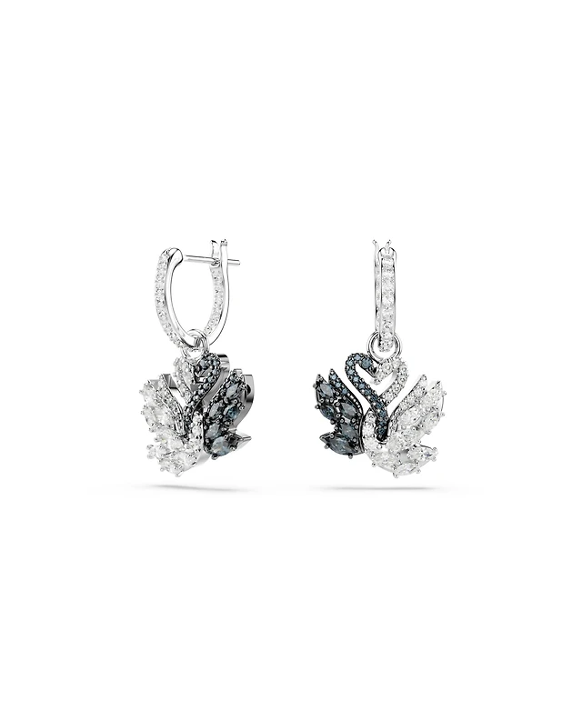 Swarovski Swan Black, Rhodium Plated Drop Earrings