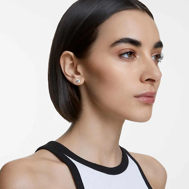 Una stud earrings, Round cut, Oval shape, White, Rose gold-tone plated by SWAROVSKI