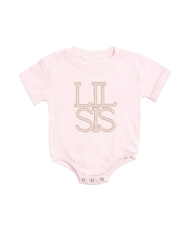 Sweet Wink Girls' Lil Sis Faux Pearl Patch Short Sleeve Romper - Baby