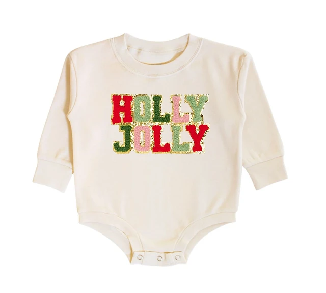 Sweet Wink Baby Girls Holly Jolly Patch Christmas Long Sleeve Romper