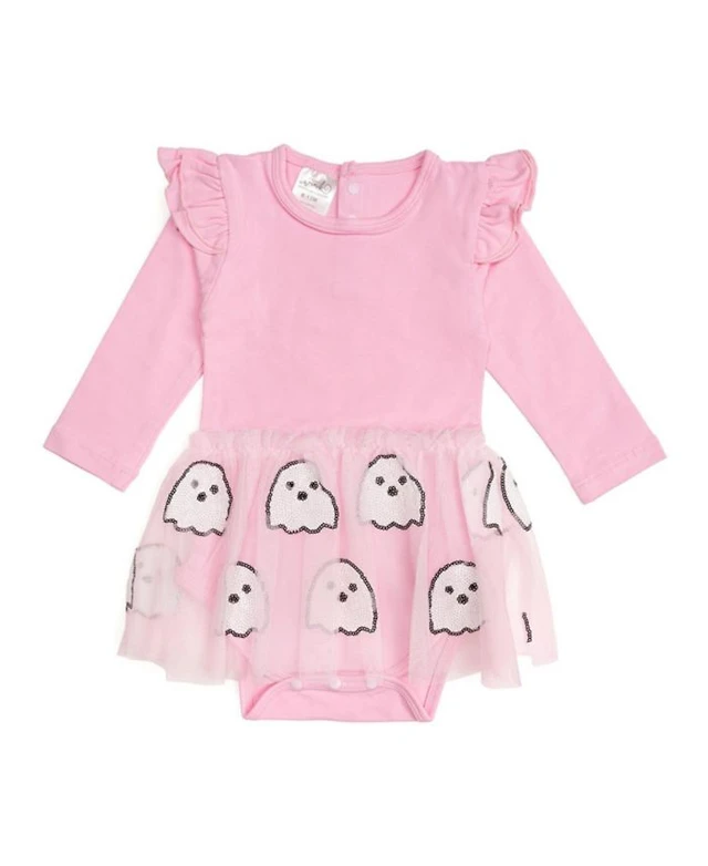 Ghost Sequin Halloween Long Sleeve Tutu Bodysuit - Baby