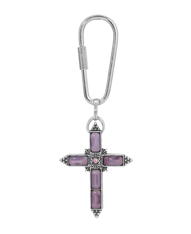 Silver-Tone Purple Moonstone Purple Crystal Cross Key Chain
