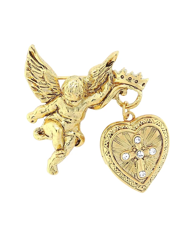 Symbols of Faith 14K Gold-Dipped Crystal Glory of The Cross Fob Locket Brooch