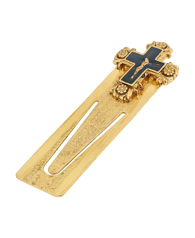 14K Gold-Dipped and Blue Enamel Crucifix Small Bookmark