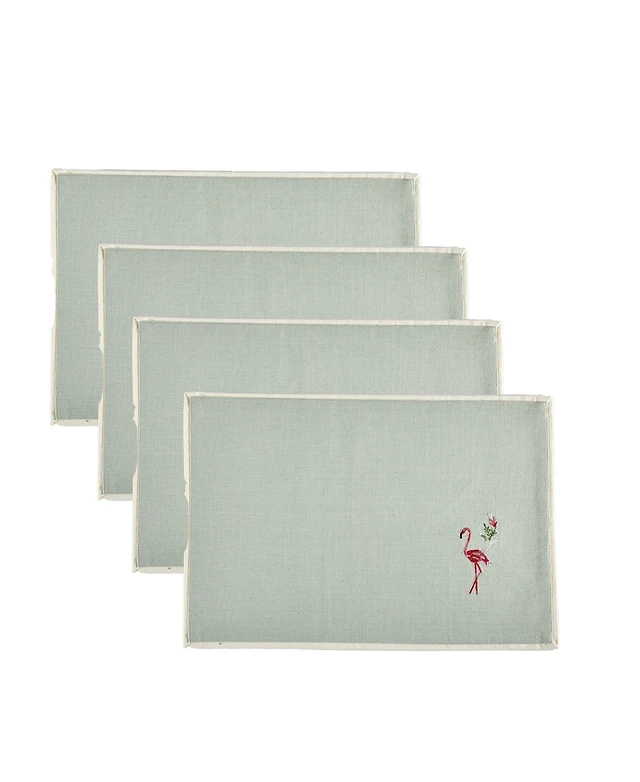Tableau Flamingo Embroidered Placemats, Set of 4