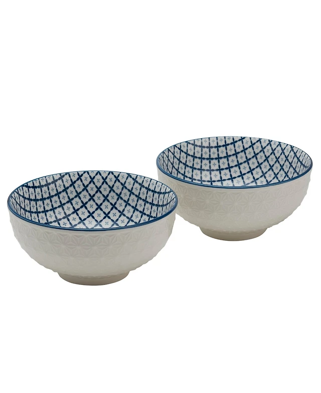 Tabletops Unlimited 6.5" White Embossed Diamond Stoneware Ramen Noodle Bowls, Set of 2