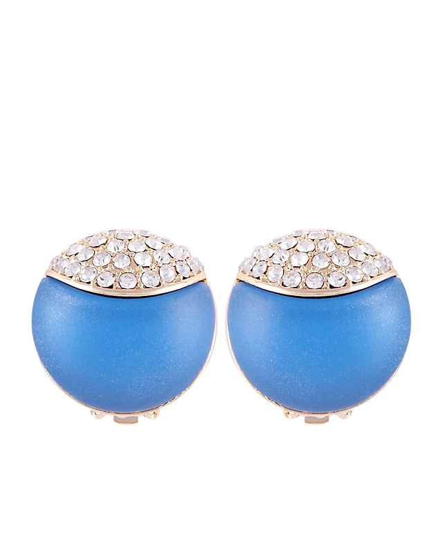 T Tahari Gold-Tone Pave Oval Clip-On Stud Earrings