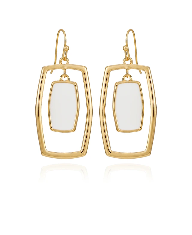 T Tahari Gold-Tone White Acrylic Rectangular Hoop Earrings