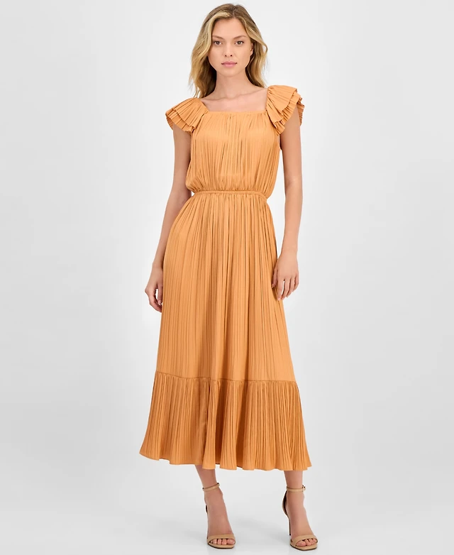 T Tahari Women's Flutter-Sleeve Elastic-Waist Tiered Midi Dress