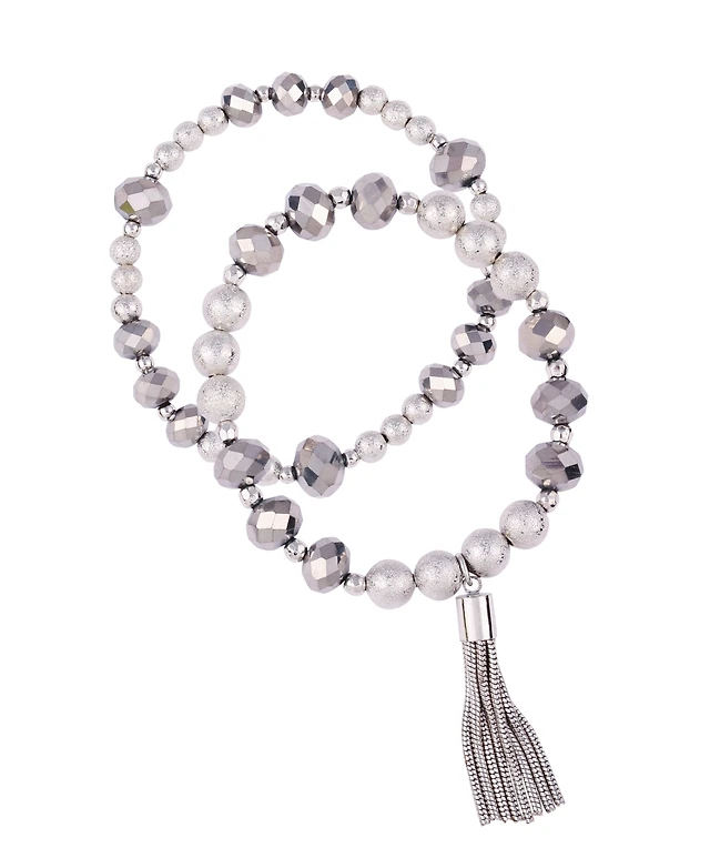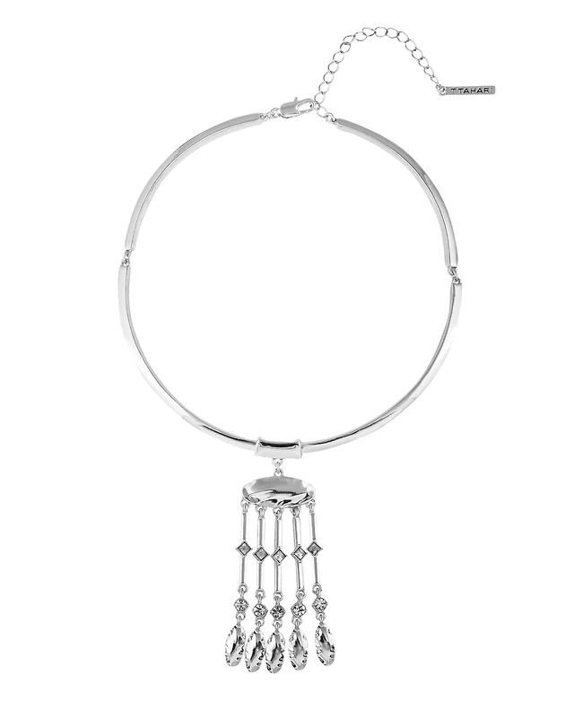 T Tahari Silver-Tone Clear Glass Stone Charm Station Long Necklace