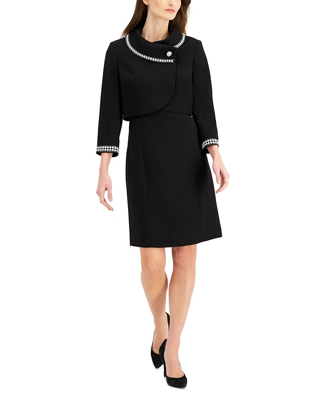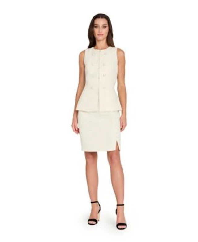 Tahari Asl Womens Collarless Cropped Boucle Vest Boucle Pencil Skirt