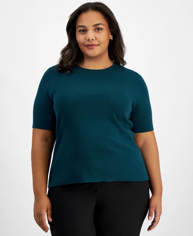 Tahari Asl Plus Size Short-Sleeve Crewneck Sweater