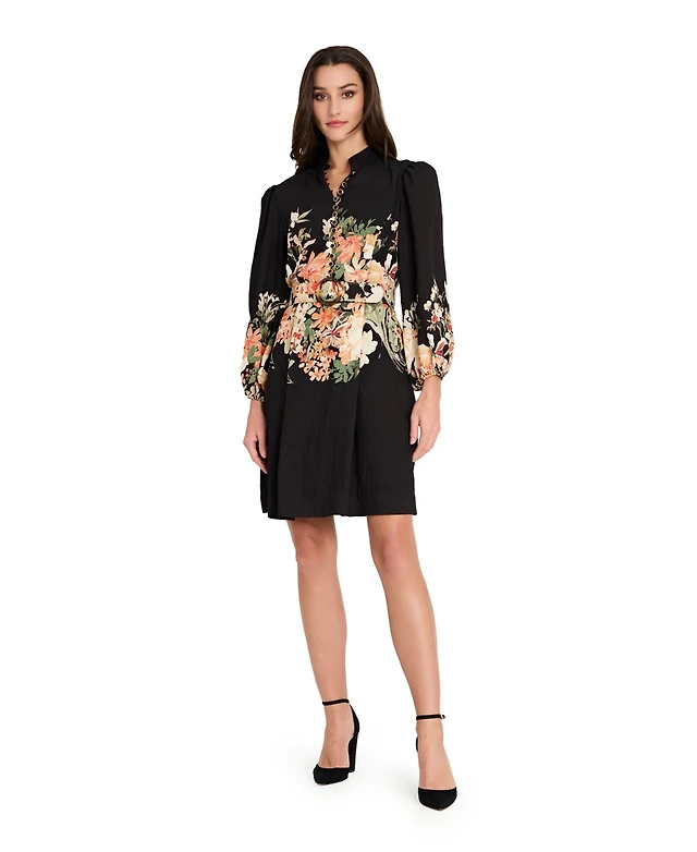Tahari Asl Women's Satin Tie-Waist Floral-Embroidered Dress