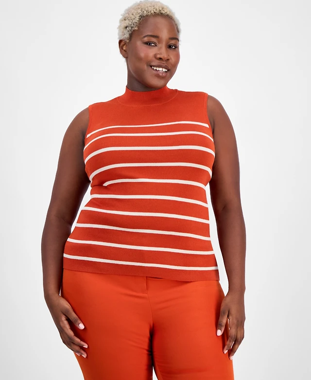 Tahari Asl Plus Striped Mock-Neck Sleeveless Sweater