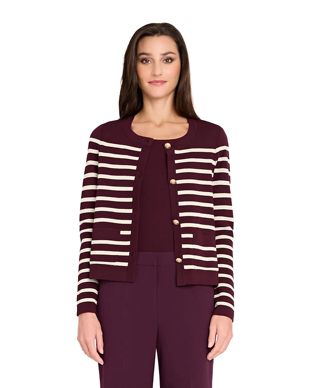 Tahari Asl Plus Scoop-Neck Striped Cardigan