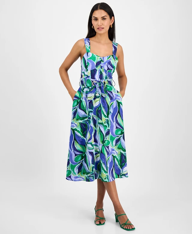 Tahari Asl Women's Belted Floral-Print Midi Dress
