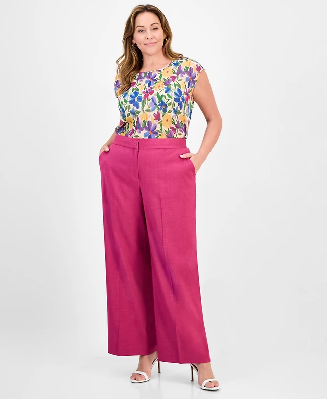 Tahari Asl Plus Front-Zip Wide-Leg Pants
