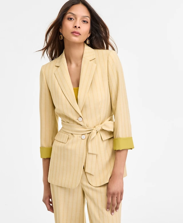 Tahari Asl Women's Pinstriped Notched Collar Belted Blazer