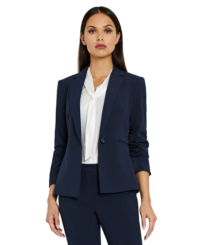 Tahari Asl Women's Ruched-Sleeve One-Button Blazer