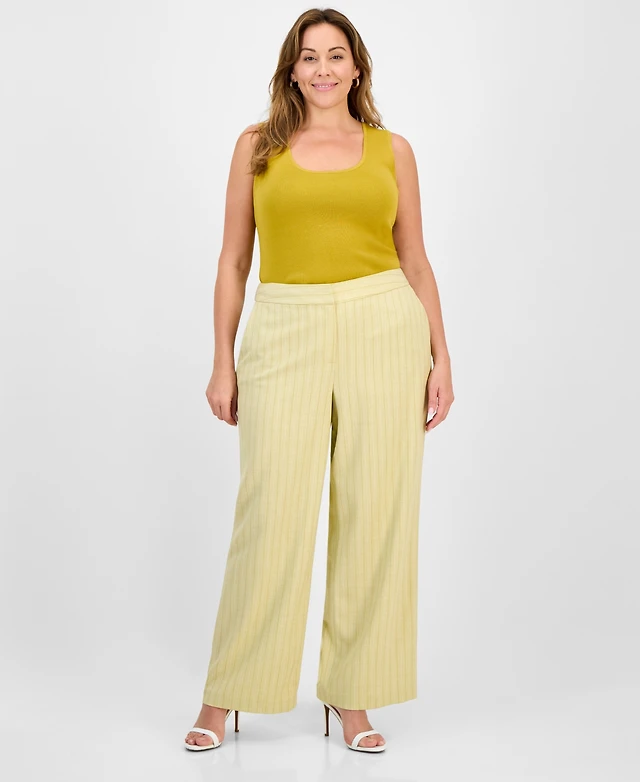 Tahari Asl Plus Pinstriped Wide-Leg Pants