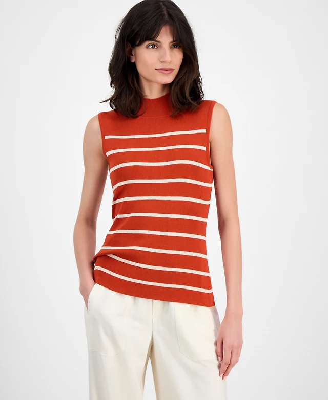 Tahari Asl Women's Striped Mock-Neck Sleeveless Sweater