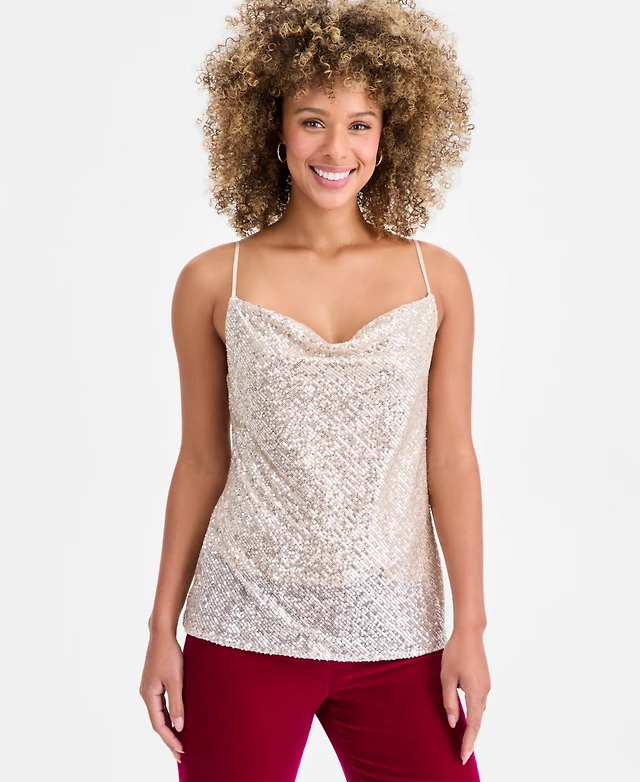 Tahari Asl Women's Sequinned Cowl-Neck Top