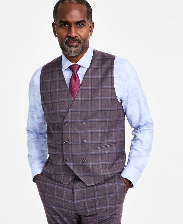 Tayion Collection Men's Regular-Fit Plaid Suit Vest